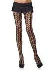 Черные колготки в мелкую сеточку с флористическим узором. Состав: 85% нейлон, 15% спандекс. Прекрасно тянуться, но при этом плотно сидят на ножке. Размер OS, подходит для параметров: объем бедер - 86-102 см, объем талии - 61- 82 см, длина по внутреннему шву - 89 см, вес - 41-73 кг.
