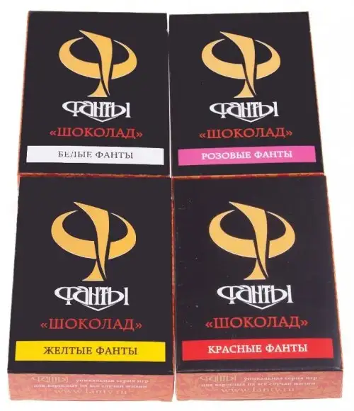 Игра Фанты "Шоколад" поставляется с четырьмя колодами карт, каждая из которых содержит 50 карт, и четырьмя уровнями близости. Игра также включает в себя каталог различных позиций, жетон для игрока, делающего ход, и инструкцию по эксплуатации.