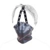 - Плотный материал. Изделие создано из качественного и плотного материала. Ткань подобна натуральной коже, эффектно сочетается с металлическими элементами. С помощью прочных ленточек можно отрегулировать и зафиксировать положение маски на лице.