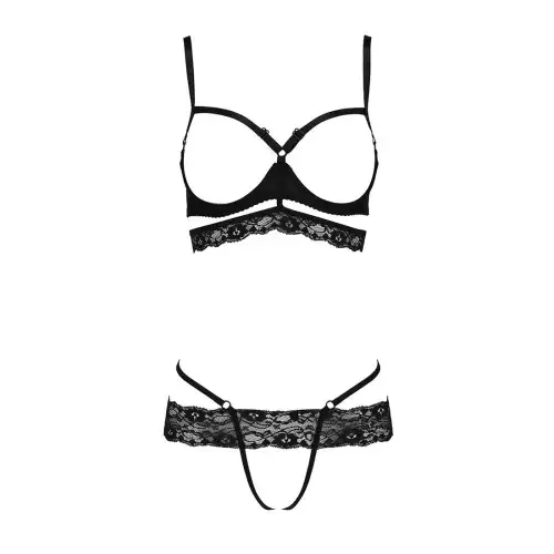 Комплект белья SARIA SET OpenBra black S/M - Passion Exclusive: стрэпы: откртый лиф, стринги